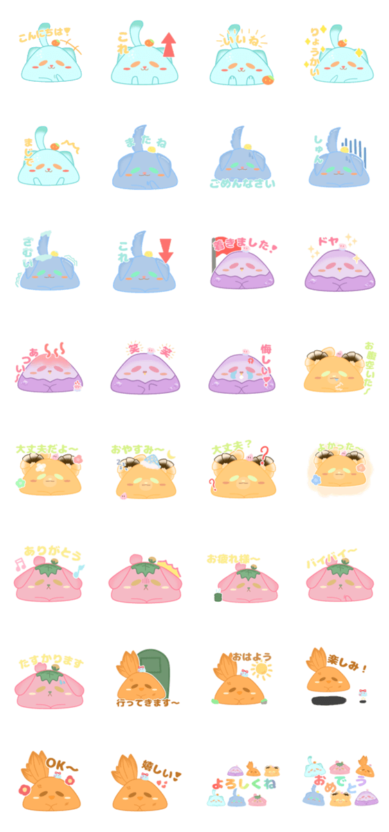 | スタンプ説明 | 可愛いスイーツモチーフの動物たちのスタンプです!いろいろな感情のスタンプがあるので是非つかてください! |