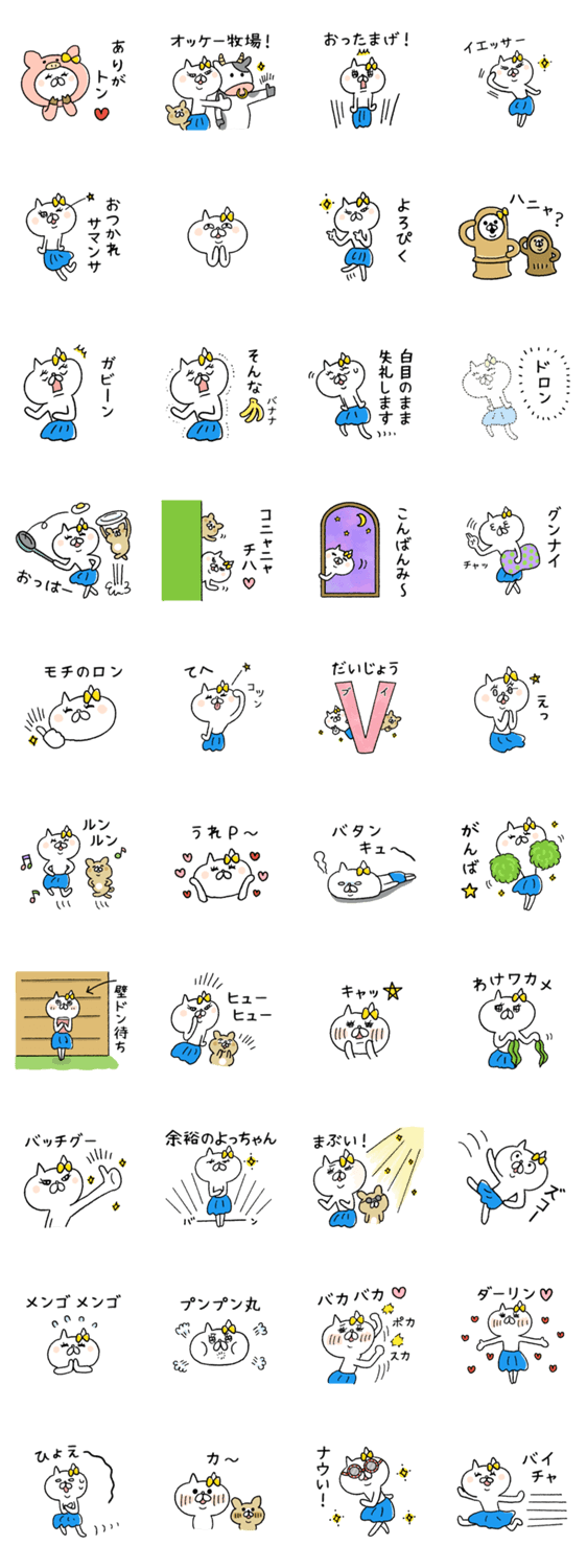 白猫ネコ子の死語&ダジャレスタンプ。昔の漫画に出てきそうなセリフやポーズをたくさん詰め込みました!