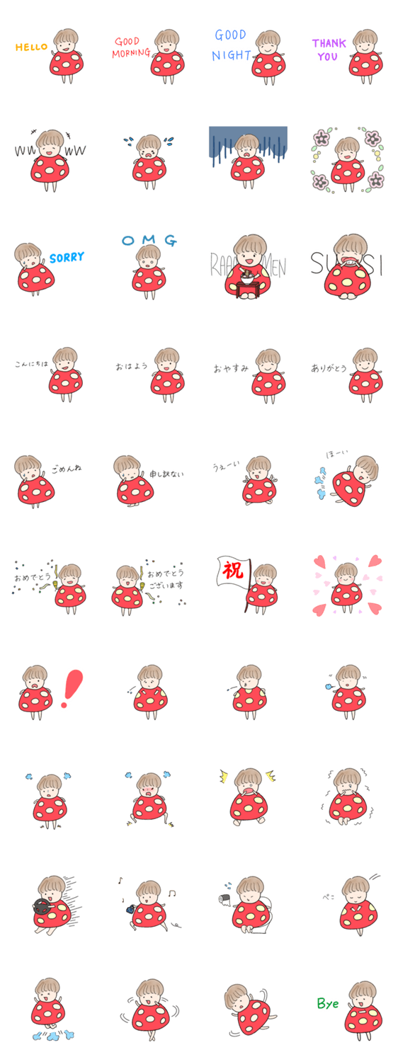 きのこの妖精きのこぼうや。簡単な英語も喋ります。日常ほんわかスタンプ