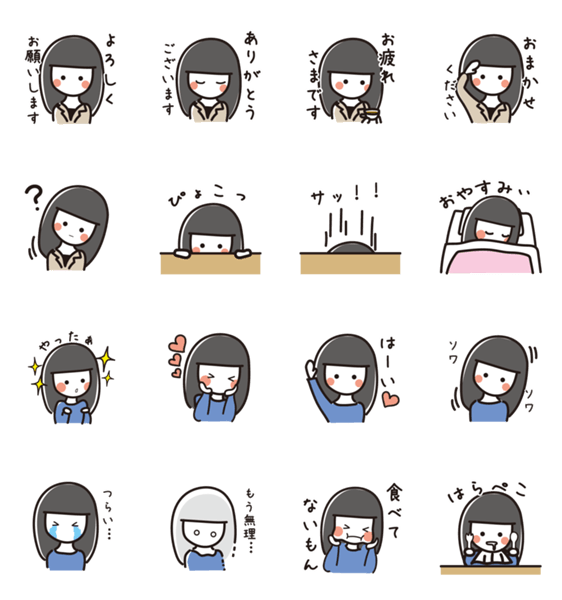 黒髪OLのオンとオフ -LINEスタンプマニア