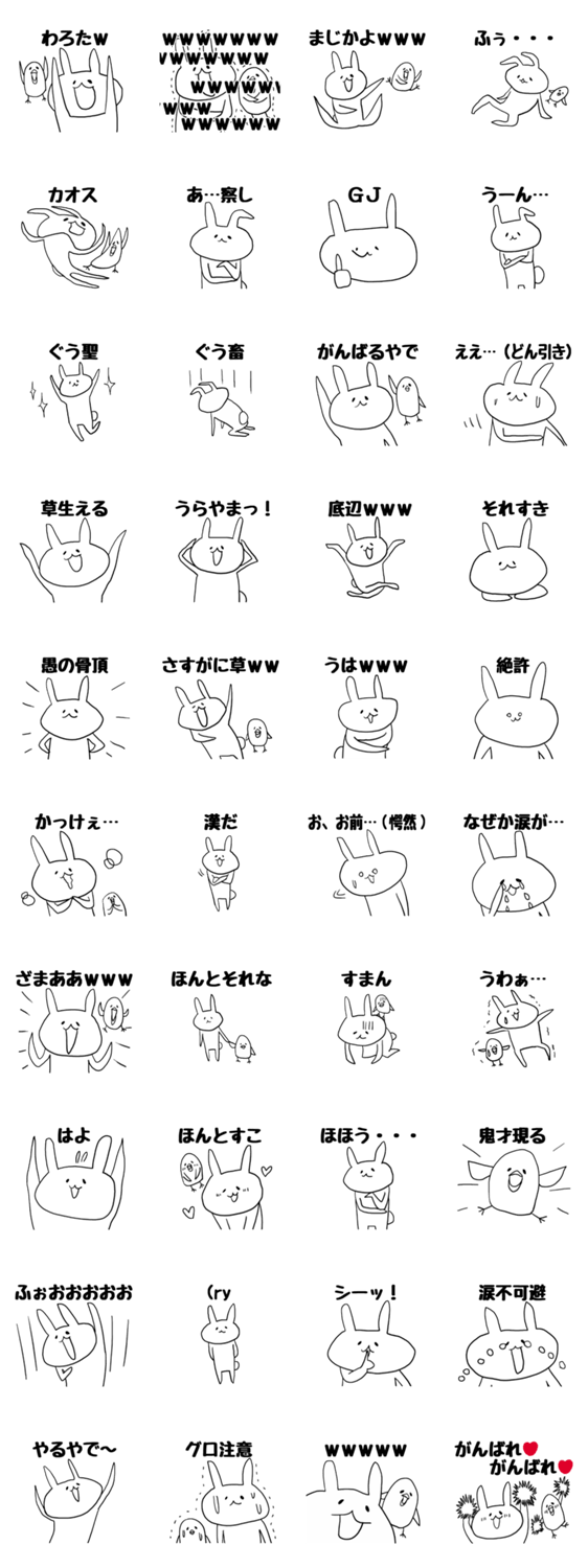 wwwスタンプです。草生える言葉を集めました。便利に返信返事できる普段使えるネット用語です。友達や家族に使えば「ちょwww」と思われます。