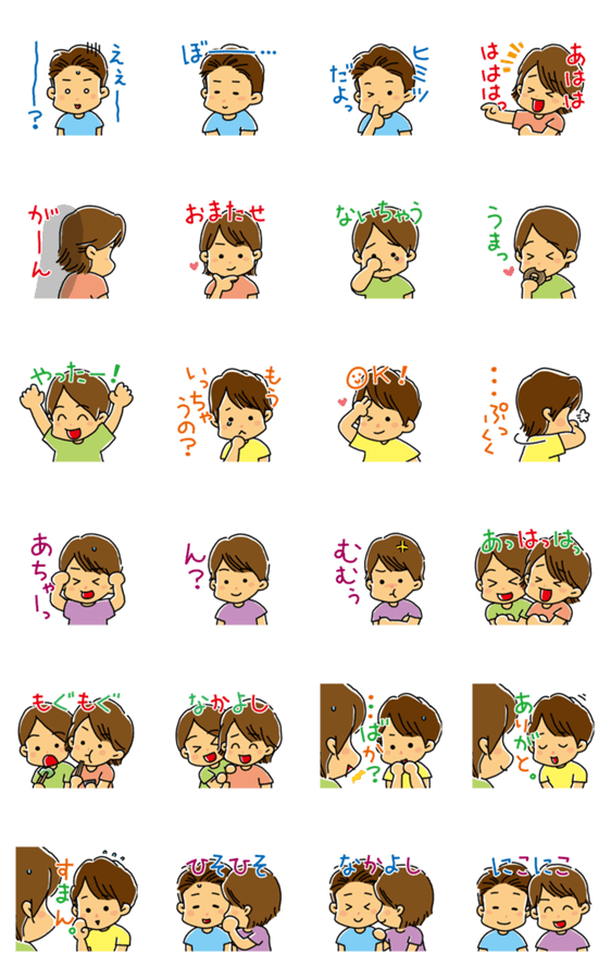 可愛い五つ子の兄弟のスタンプです。 ほんわかした長男、しっかりものの次男、涙もろい三男、おちゃめな四男、お兄ちゃん大好きな末っ子。