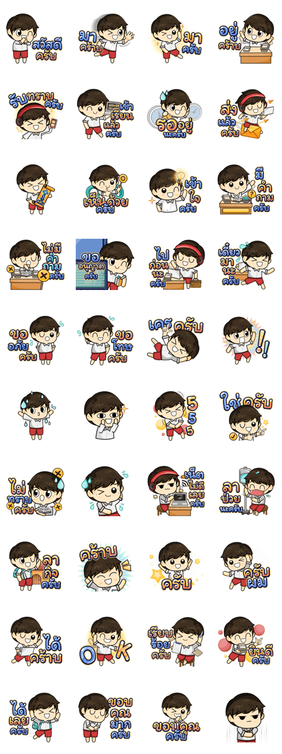 | スタンプ説明 | Biewo is a boy in a Thai student uniform (Red shorts). Work & Study Online from home. (Banno's Diary original sticker) (Banno Sticker 31-5) |