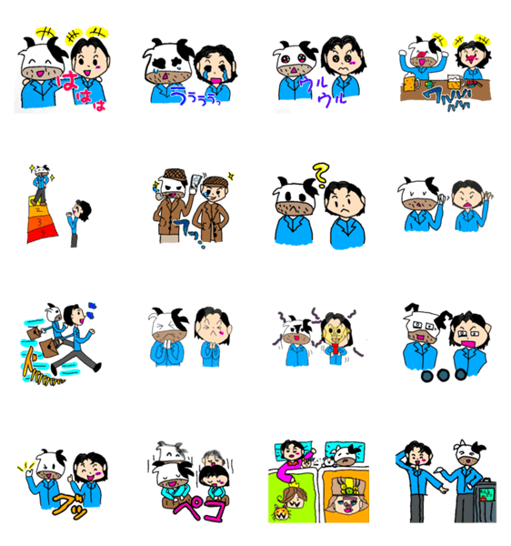 うしのすけと同僚のはらだこうせいの日常スタンプ