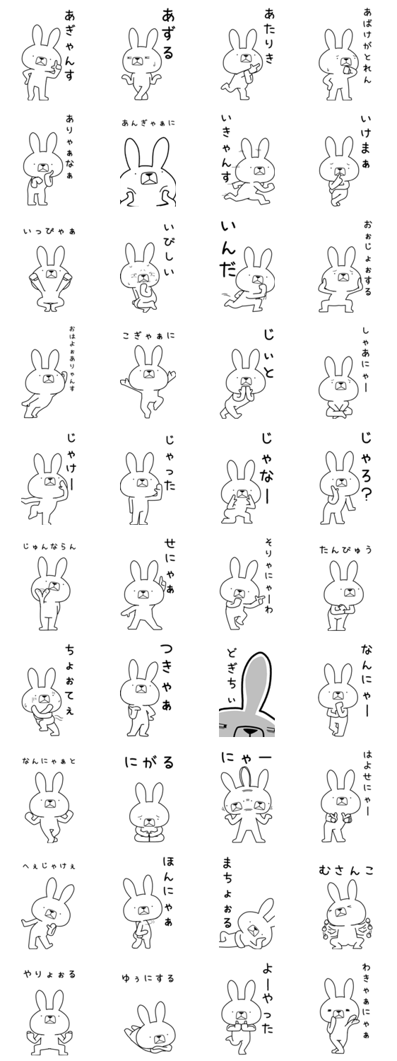 いろんな方言をつかううさぎのスタンプ備後弁編(広島・岡山・中国地方、そうでない方も使えるかも。また違う県verに似た方言が見つかるかも) ※このスタンプはトークルームで大きく表示されるBIGスタンプです。