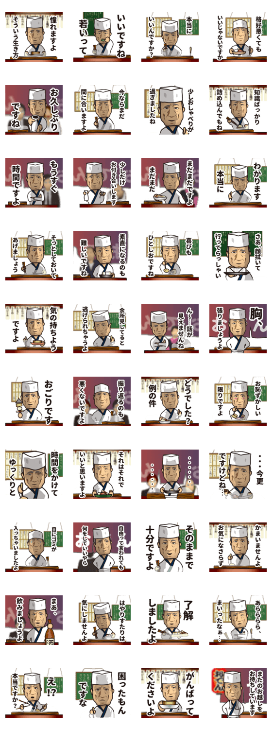 華やかさはないが、心温まる美味しいおでんが食べられるおでん屋台の親父さんが何気ない事を言うスタンプ。