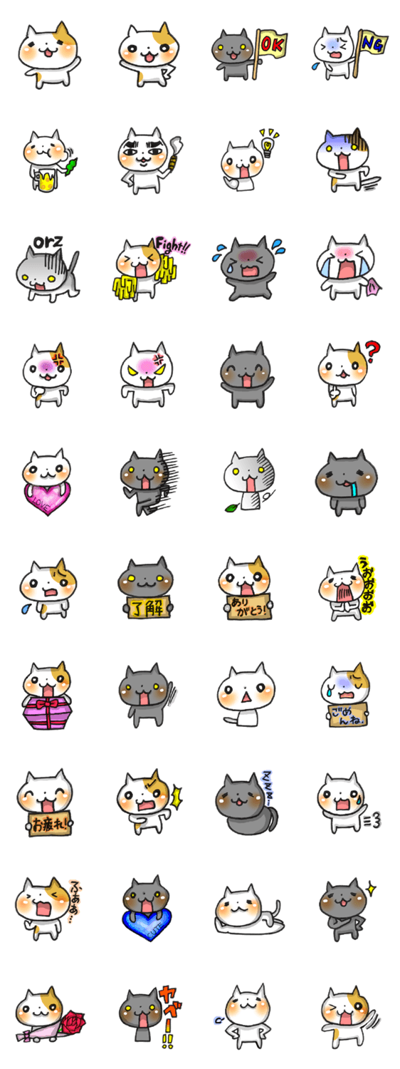くろにゃん・しろにゃん・ミケにゃんのスタンプです。ゆる系からメッセージ系のスタンプも入っています♪(^▽^)