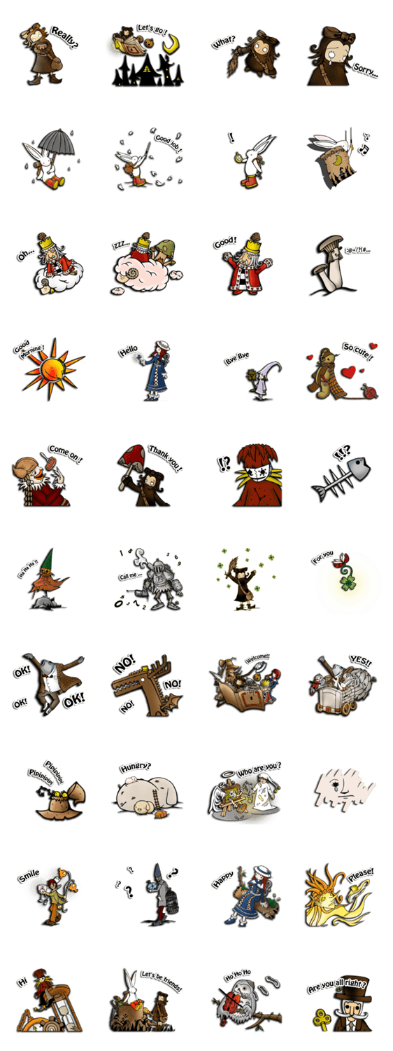 | スタンプ説明 | 「おがわまさと」が描く、絵本の登場人物がスタンプになりました。見習い魔女のネネ、旅うさぎのマーフィなど、不思議かわいいキャラクターが勢揃い。 |