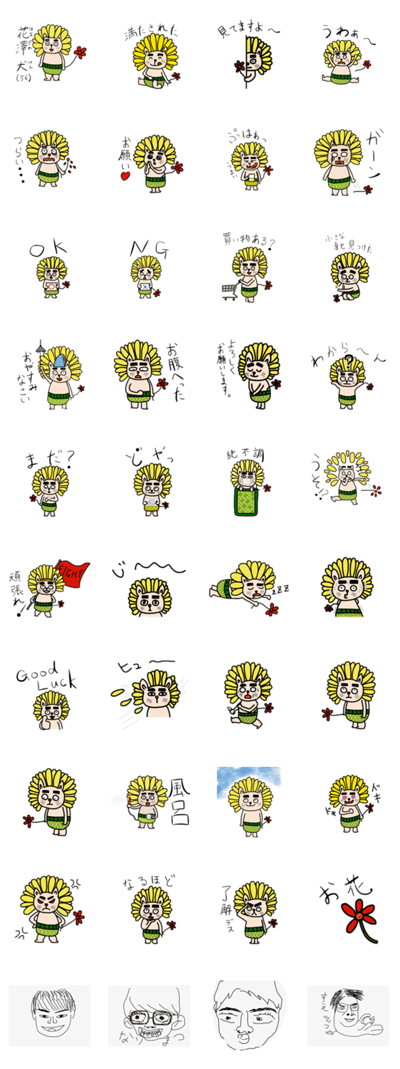 はなざわ けん と読みます。 犬と花が融合したなんとも可愛らしいキャラクタースタンプ! あなたの心を花澤さんが掴みます。
