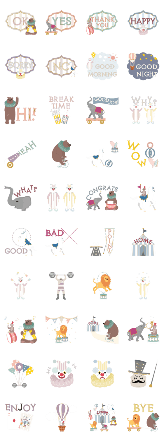 かわいいサーカス団のスタンプを使って、日常の言葉にかわいらしさと楽しさをプラスしてみませんか?