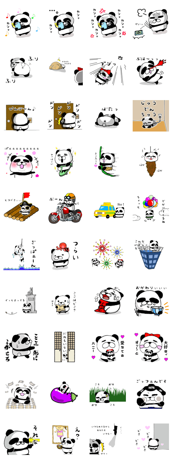 | スタンプ説明 | 愛くるしいおデブパンダのスタンプ。パンパンのお腹が売り。第七弾!登場~♪自由奔放に遊び回っているゆるパンダちゃんをご堪能下さい~♪ |
