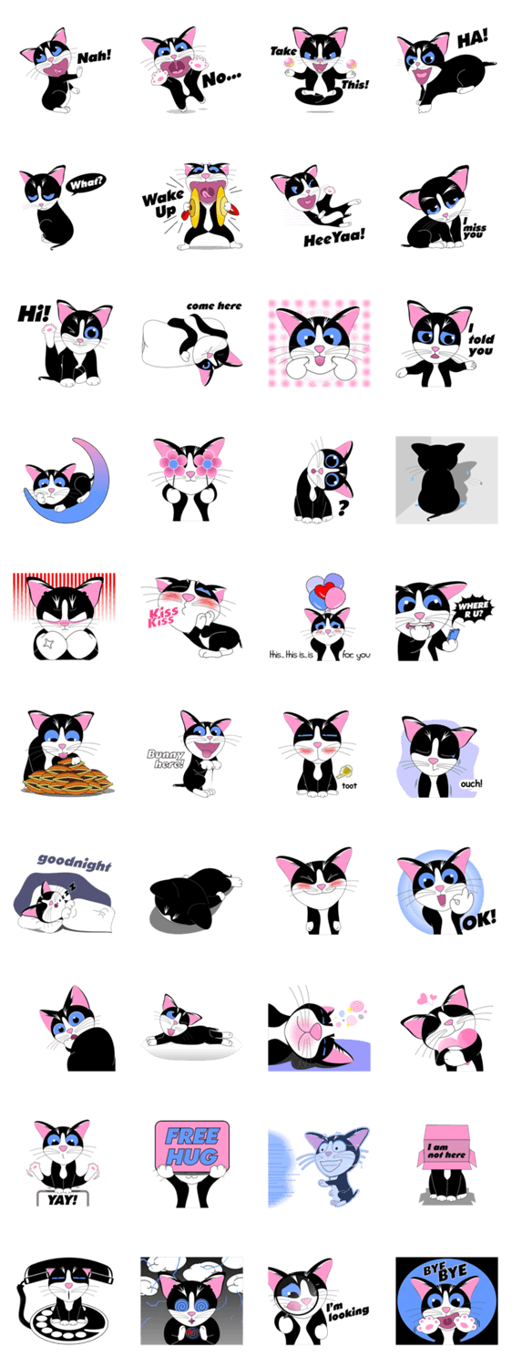 | スタンプ説明 | Adorable adopted Tuxedo Cat is now want to say hi to everybody. He is so cute with innocent eyes and notti character ^^. |