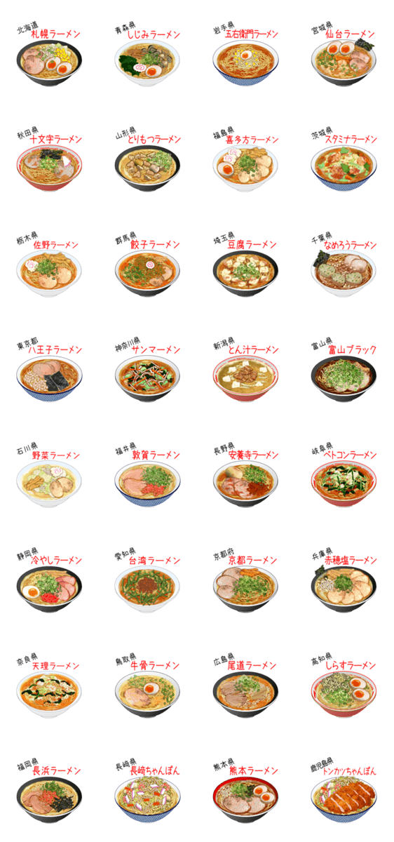 | スタンプ説明 | 美味しいご当地ラーメンを食べまくり♡今日もラーメン!またラーメン!明日もラーメン!明後日も!!日本中のラーメンを食べつくせ! |
