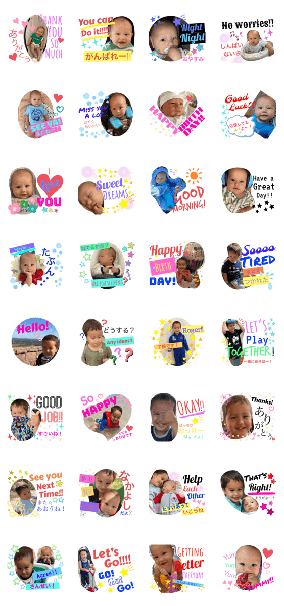 オースティンは新生児から6ヶ月、ベンは3歳の時の写真で作ったスタンプです。