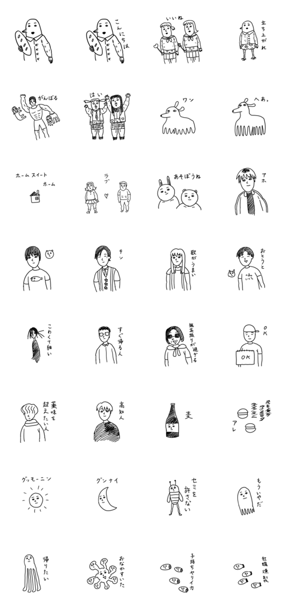 うらみちお兄さん こと表田裏道が徹夜して頑張って描いたスタンプです。後半にかけて顕著に疲れていっているのがわかるのも仕様です。