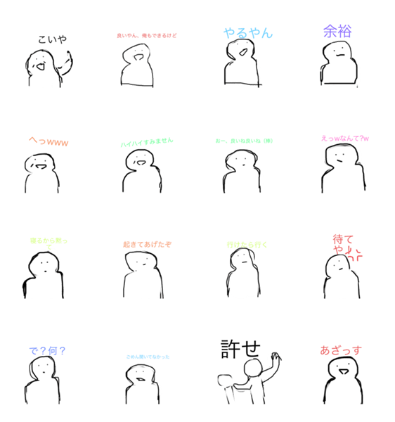 | スタンプ説明 | 絵心のない僕が指で作ってムカつくように作ったスタンプです。相手を煽る用などに使いましょう。 |