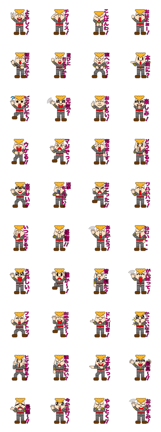 | スタンプ説明 | Have you ever seen the bad boy like him before?How nostalgic he is! We can't help laughing at him.Strangely, he looks a kind boy,doesn't he? |
