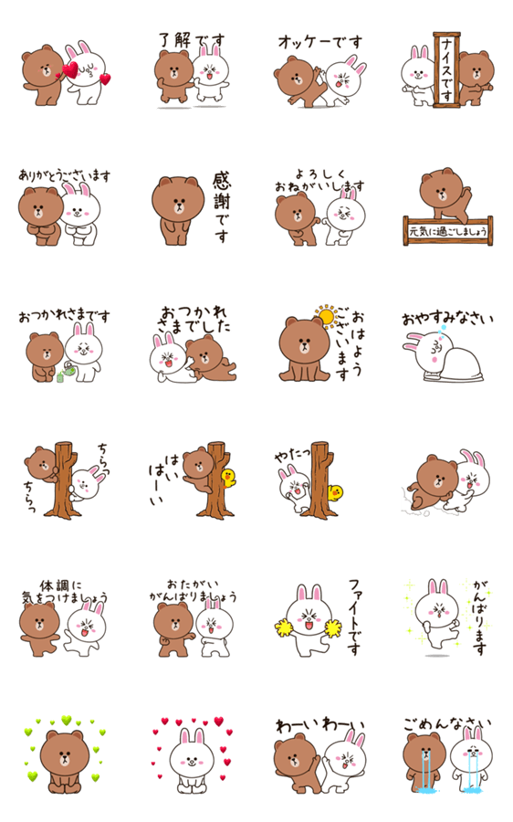 のびのび元気に動くブラウン&コニーのスタンプです! ※BROWN & FRIENDS をみんなでつくろう!キャンペーン参加スタンプです