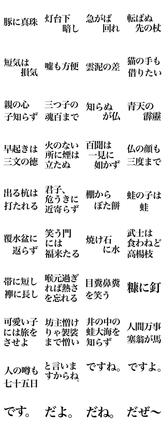 よく使う「ことわざ」で大きな文字で返信 -LINEスタンプマニア