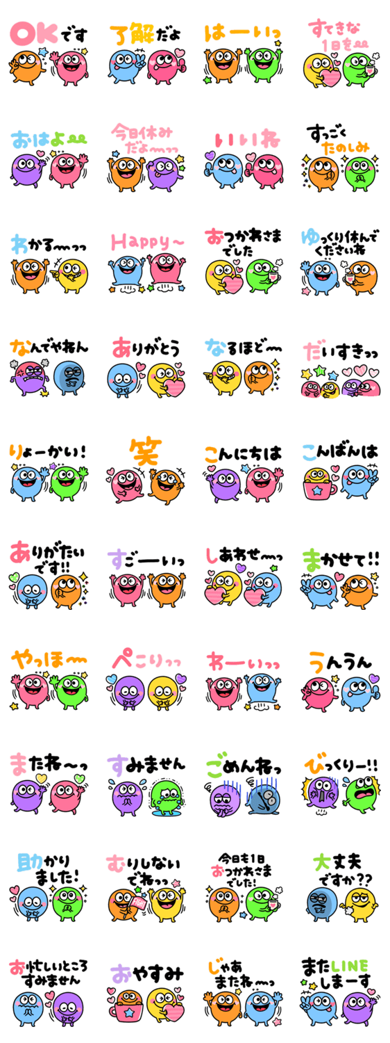 日常で毎日使える言葉を集めたカラフルかわいいモンスターのスタンプです。 見やすいBIGな文字♡ 敬語、働く社会人、大切な家族、連絡用