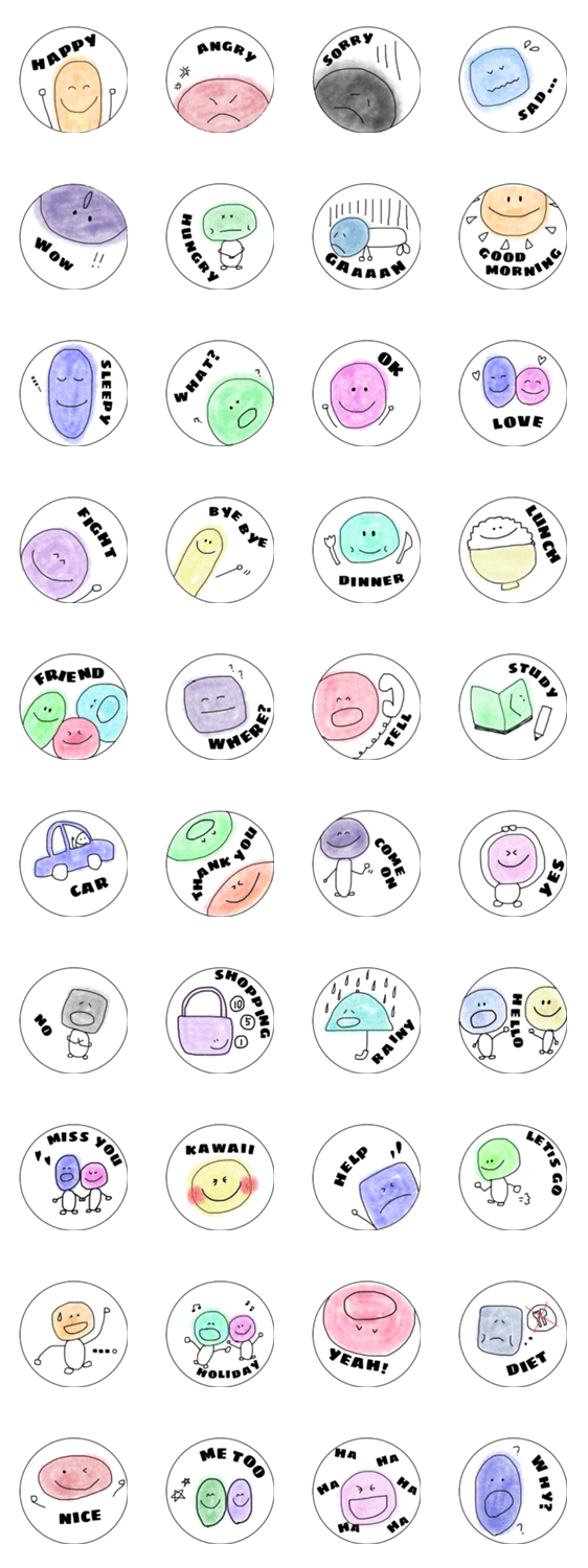 よく使う言葉を、キモカワスマイルと一緒に…。