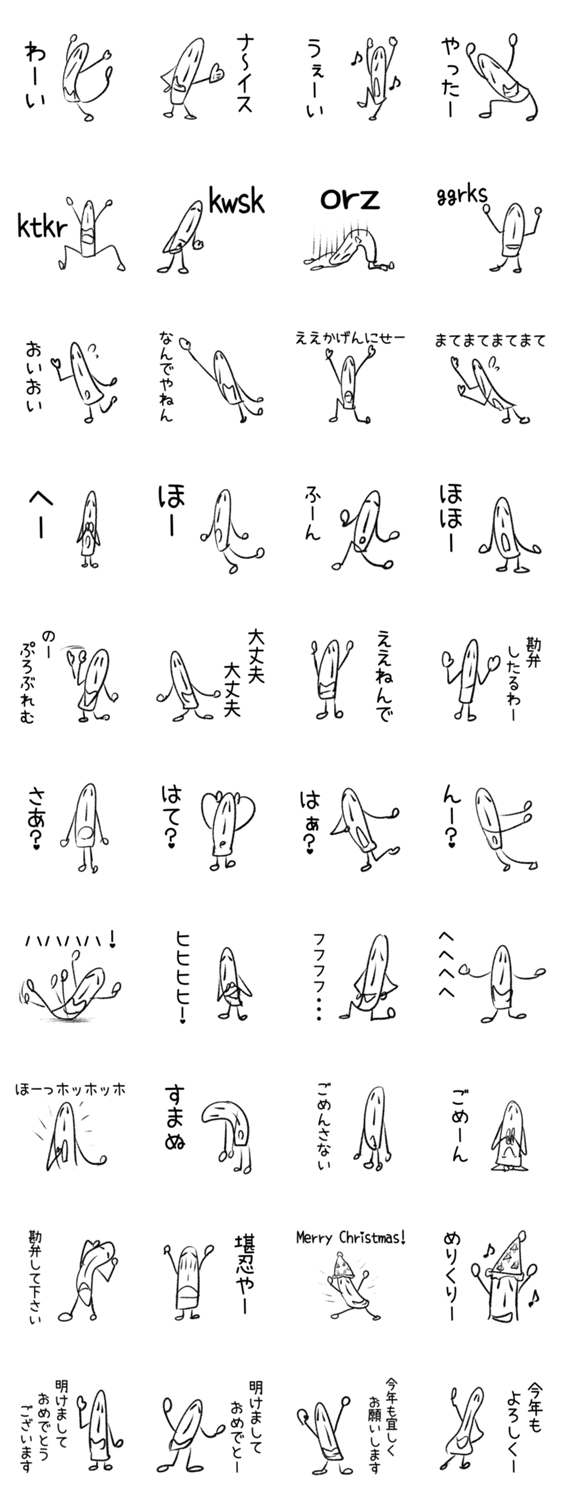 シリーズ6作目(棒)のスタンプです。日常的に使えるワードや関西弁や敬語の他、年始(お正月/年賀状)の挨拶等を入れました。