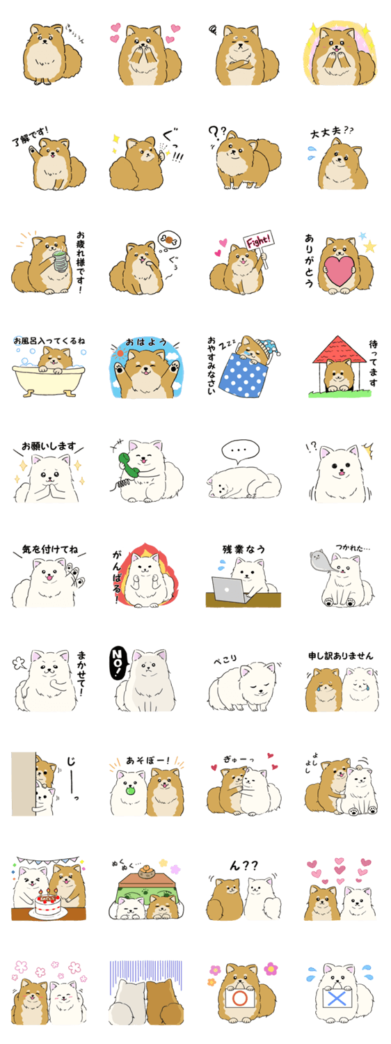 ゆるくて可愛いポメラニアンの、日常会話に使いやすいスタンプです♪