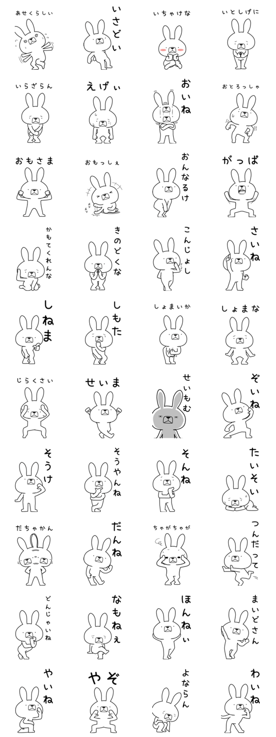 いろんな方言をつかううさぎのスタンプ山中弁編(石川・加賀・北陸、そうでない方も使えるかも。また違う県verに似た方言が見つかるかも) ※このスタンプはトークルームで大きく表示されるBIGスタンプです。