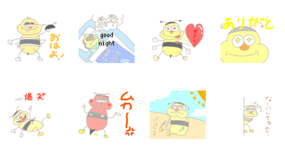 可愛くて、ちょっと変な虫のスタンプだよ。