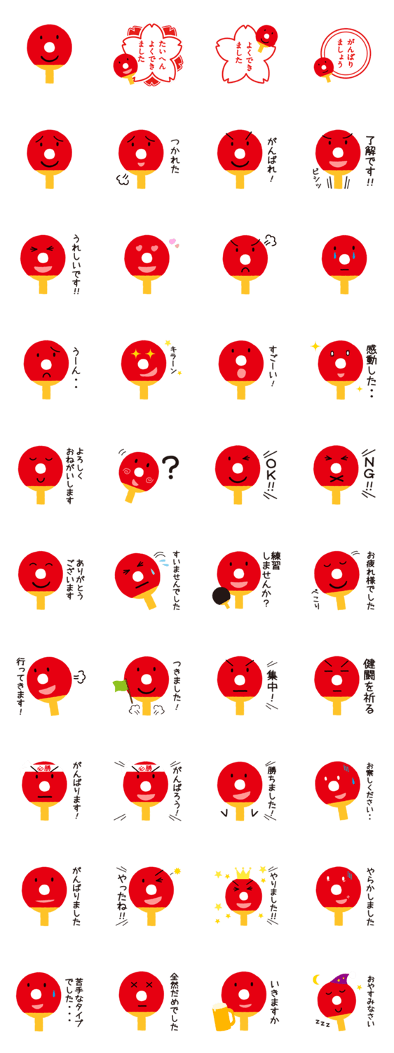 | スタンプ説明 | 卓球好きには使い勝手のいいスタンプだと思います。皆様のピンポンライフにささかやな彩りを。NO PINGPONG, NO LIFE! |