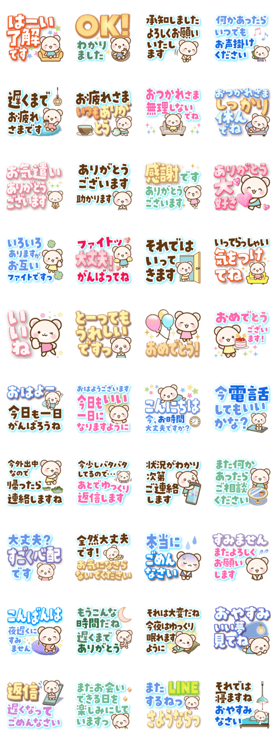 ママ友や仕事仲間など誰にでも送れる便利なデカ文字スタンプです♪相手を気遣うやさしい言葉がたくさん入っています。