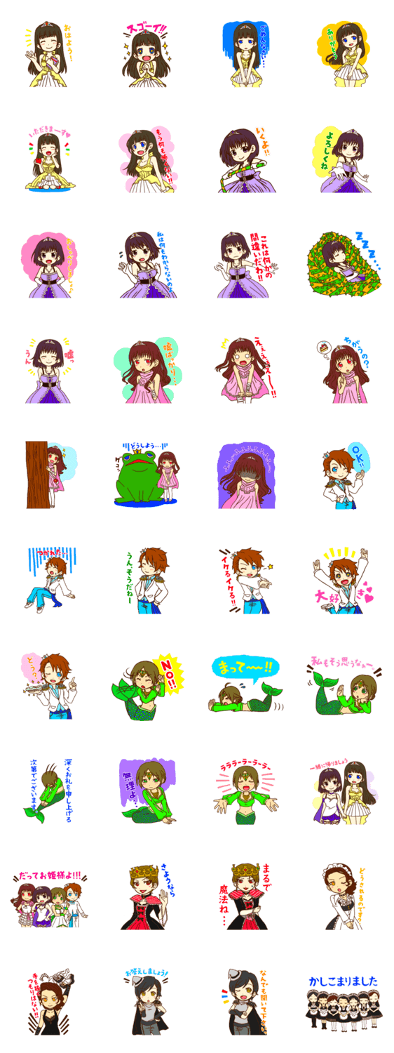 ミュージカルユニットもえぎ色第10回公演『Princess Fighter』のお姫様たちをスタンプにしちゃいました。可愛く使ってね!だってお姫様よ!!