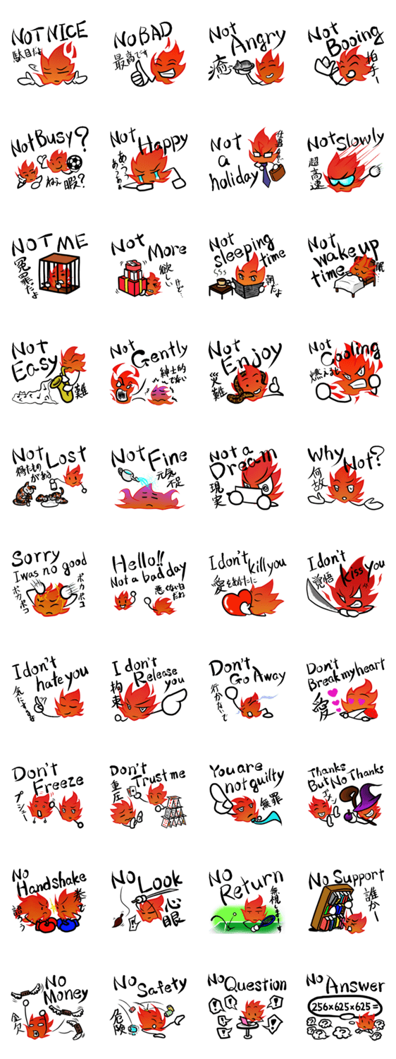 ゆるい見た目で、マジメに問題発言を繰り返す《炎上上等、ゆるマジ君》のスタンプです。第一弾は、無意味な否定。炎上上等だから、文法無視して否定します。