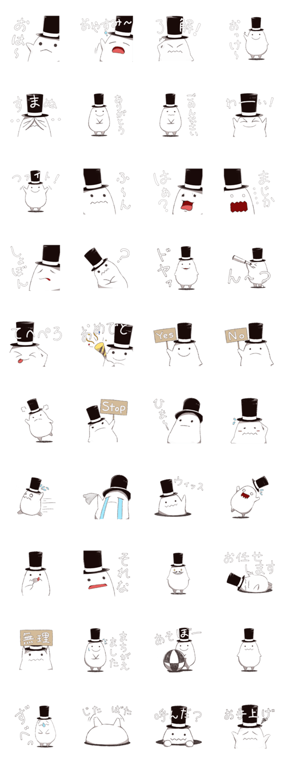 生物 スタンプ ぷにぷにした 紳士 帽子 ぷにっと