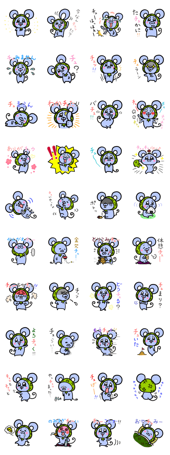 手ぬぐいをかぶった(ほっかむり)ねずみがあなたの代わりにチューチュー伝えます。