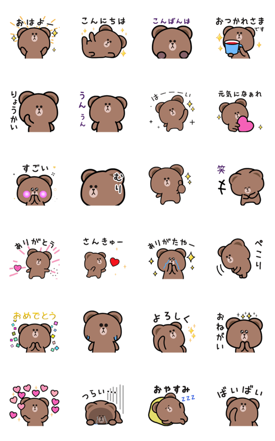 よく使う日常の言葉ばかりのキュートなブラウンの動くスタンプです。 ※BROWN & FRIENDS をみんなでつくろう!キャンペーン参加スタンプです