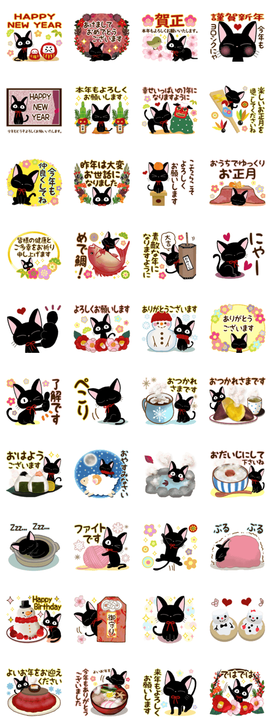 黒猫の気づかい大人スタンプ 冬/年末年始. -LINEスタンプマニア