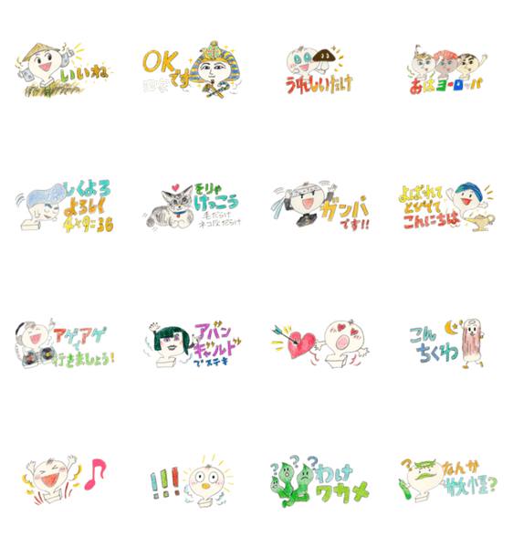 ダジャレと昭和ワードの第2弾!!使いやすいリアクション集。いいね、OK、よろしく、などの定番メッセージと、なんか妖怪?(用かい?)などほっこりダジャレの、モチ。