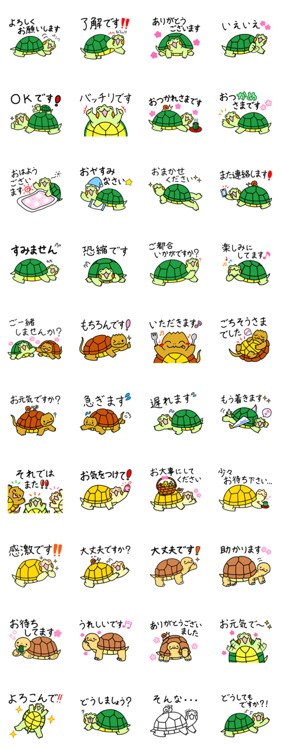 アカミミガメのみどりちゃんと仲間たちの敬語スタンプです♪