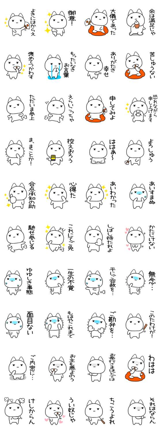 しろくてまるネコ:ねこの武士語の日常会話に使えるスタンプです もるきゅた作