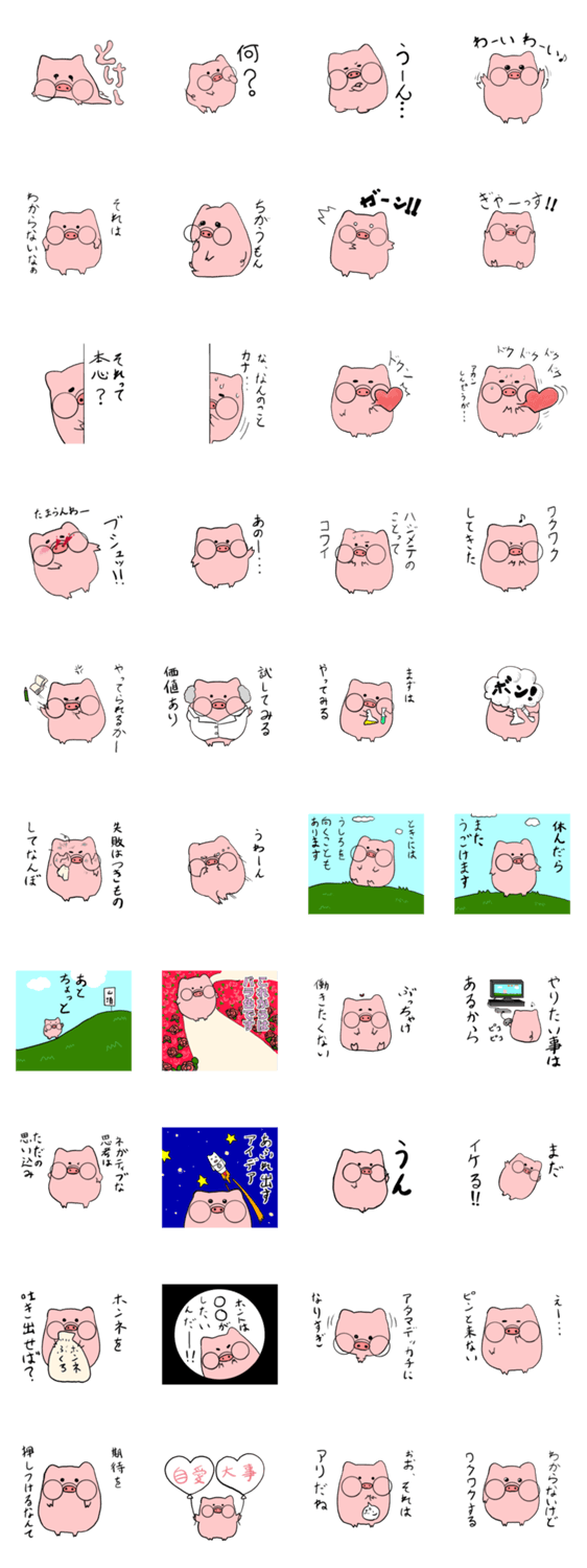 | スタンプ説明 | ぶっひーの第4段です。今回は40個MAX増産しました。(多分使える。) |