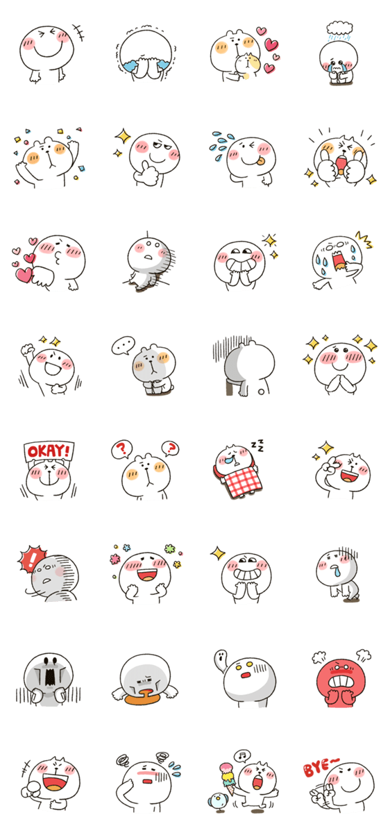 LINEの人気キャラクター、ムーンの既存定番スタンプが、まるぴになりました!くまぴ、ねこぴ、トリさんもいます。