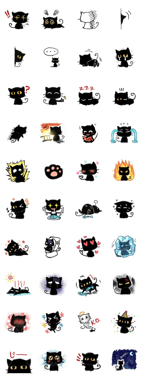 | スタンプ説明 | Ugly black cat thirsty for your attention |