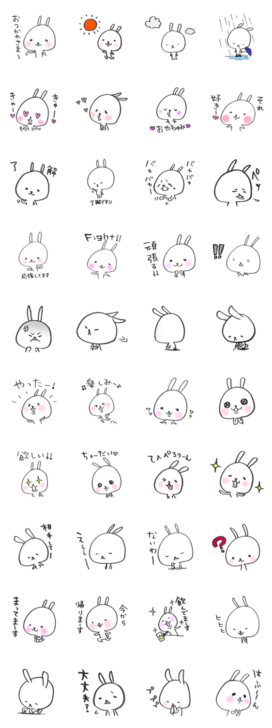 前回はグレー統一でしたが今回は色をつけました。ゆるくけだるめなウサギ。使えそうなものがあればどうぞお使いください。