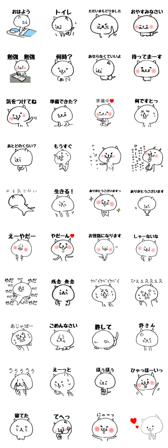 白ネコのあいうえお・・・ってるスタンプ