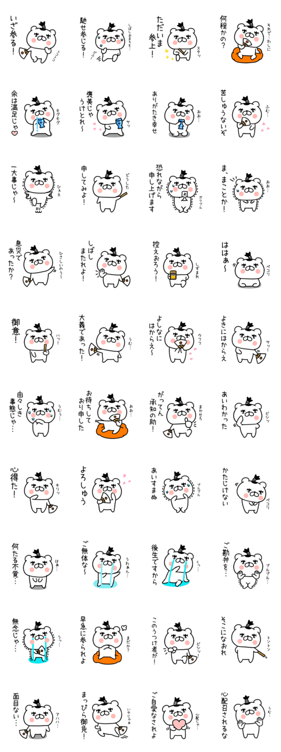 もるきゅた作 しろくてまるい熊:クマ:くまのキャラの武士語のスタンプです。
