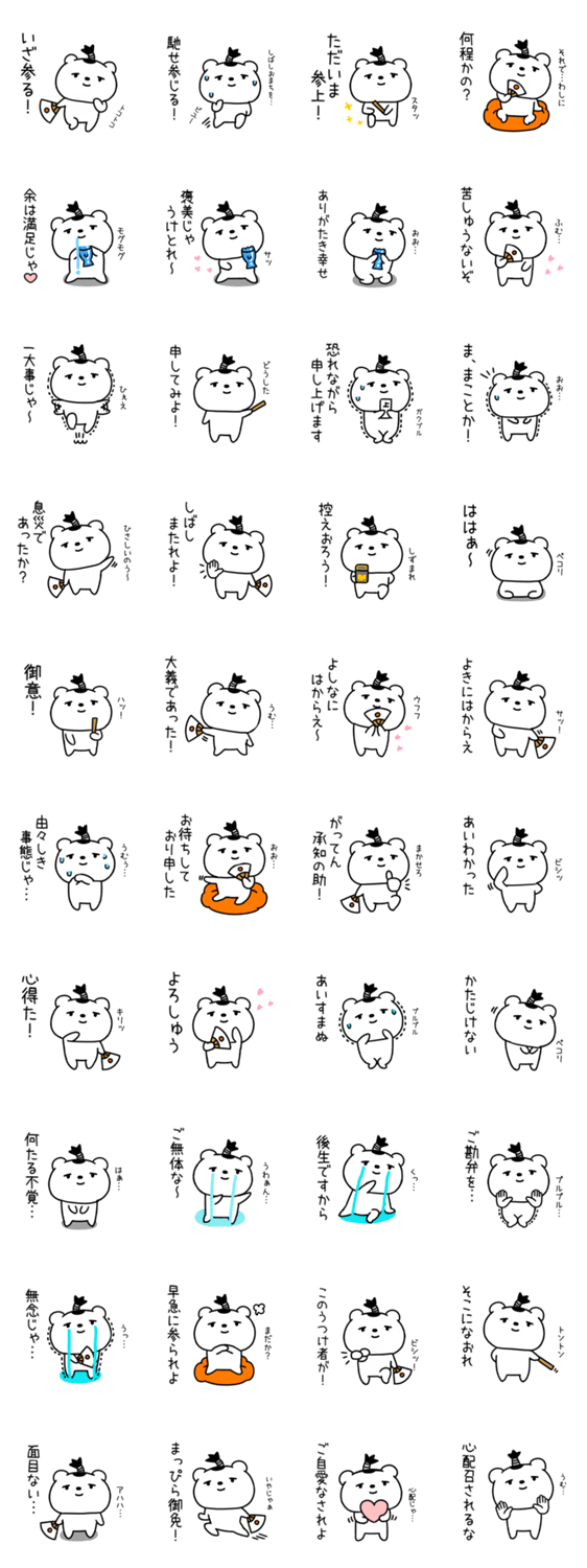 もるきゅた作 しろくてまるい熊:クマ:くまのキャラの武士語のスタンプです。