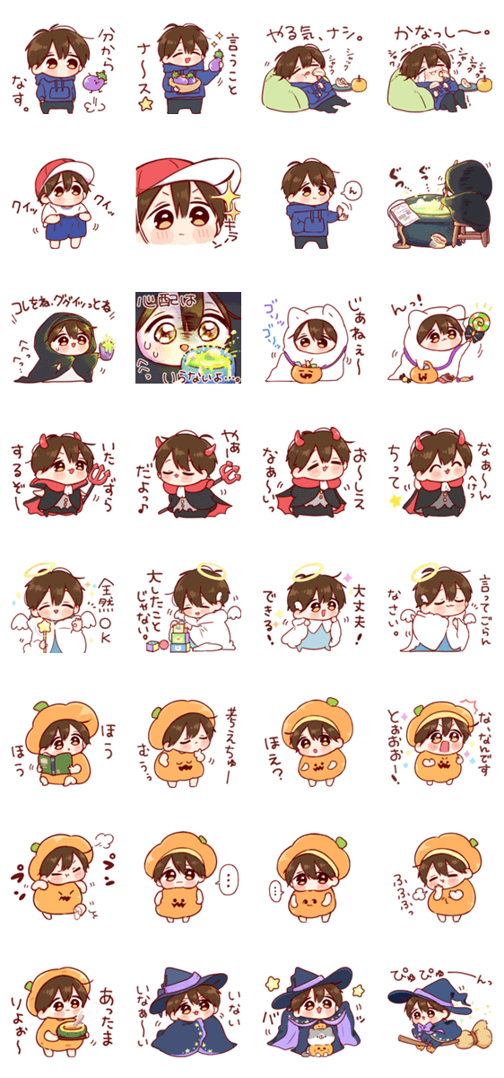 ハロウィンなど秋をいっぱい詰め込んだゆるくてシュールな男の子のスタンプ第16弾‼