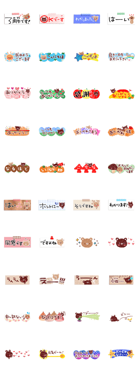 場所をとらない省スペース♪敬語・丁寧なやりとりにも。 使いやすいくまのスタンプセットです。