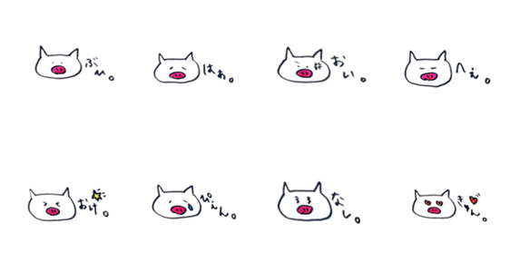 ゆるーいゆるーい手描きの豚さんです。一言で済ませたい時に。